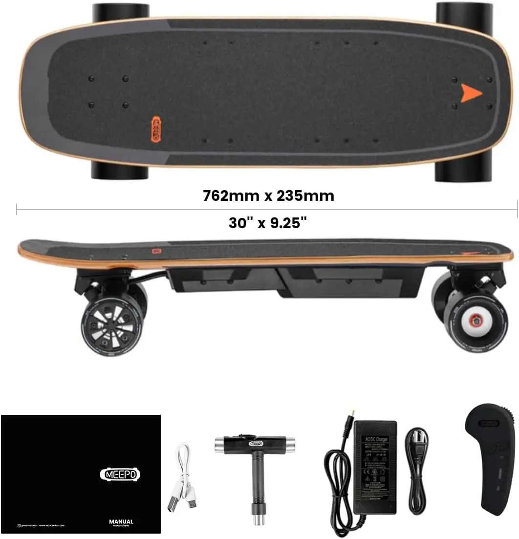 - [Package Contents] M5 remote, 42V/1.5A charger,skateboard tools and USB cable for remote are all included in Meepo kit.