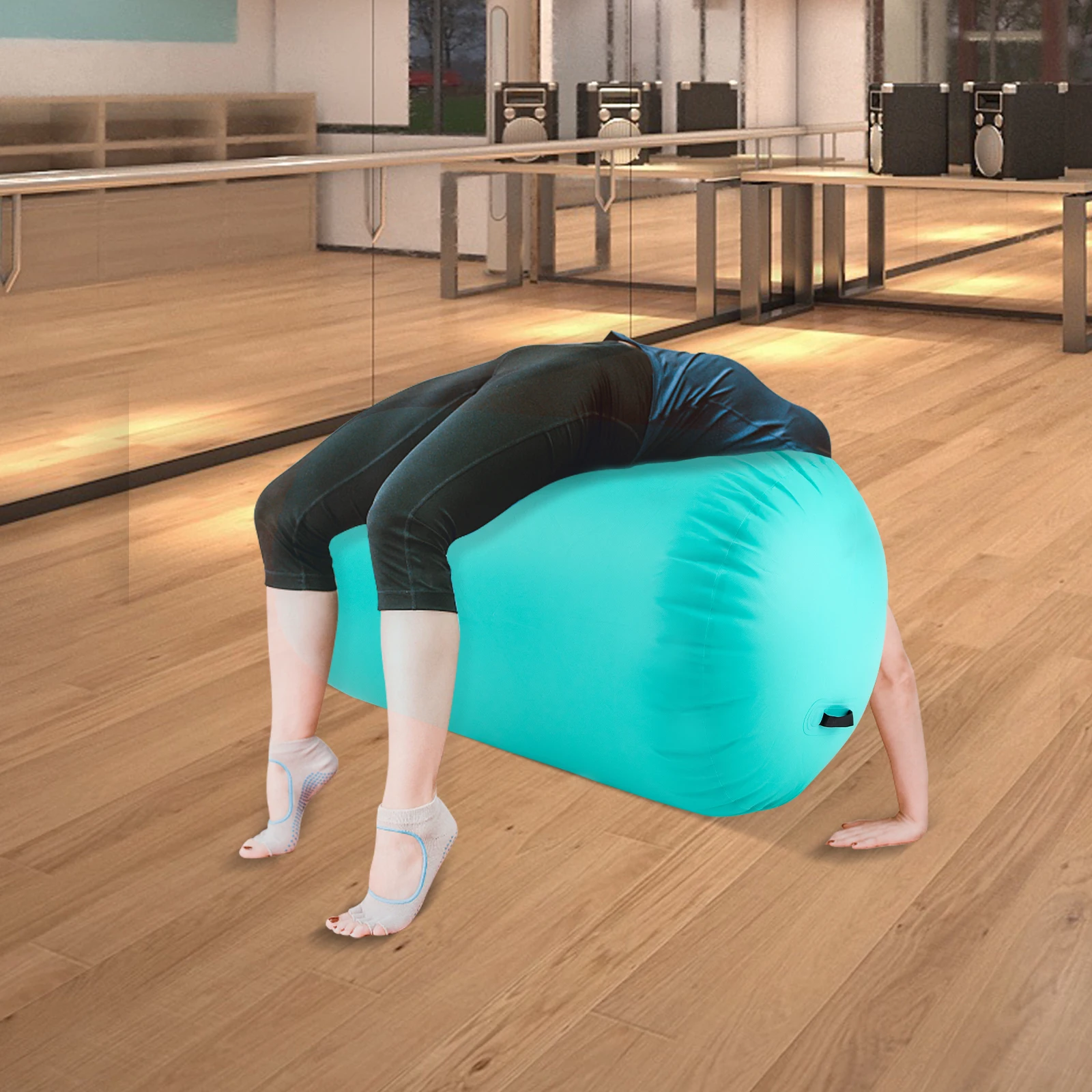It is made of high-quality PVC material, is lightweight, and is easy to carry. It can be used both as a balance training tool and as auxiliary equipment for flexibility exercises. Using an air pump to inflate it, you can train various movements, such as rolling, jumping, flipping, etc. Through continuous practice, you can improve body coordination and flexibility, enhance muscle strength, and achieve a better level of physical fitness. Also, using an air roller can add fun and challenge, making it a great piece of equipment for children and teens to exercise.